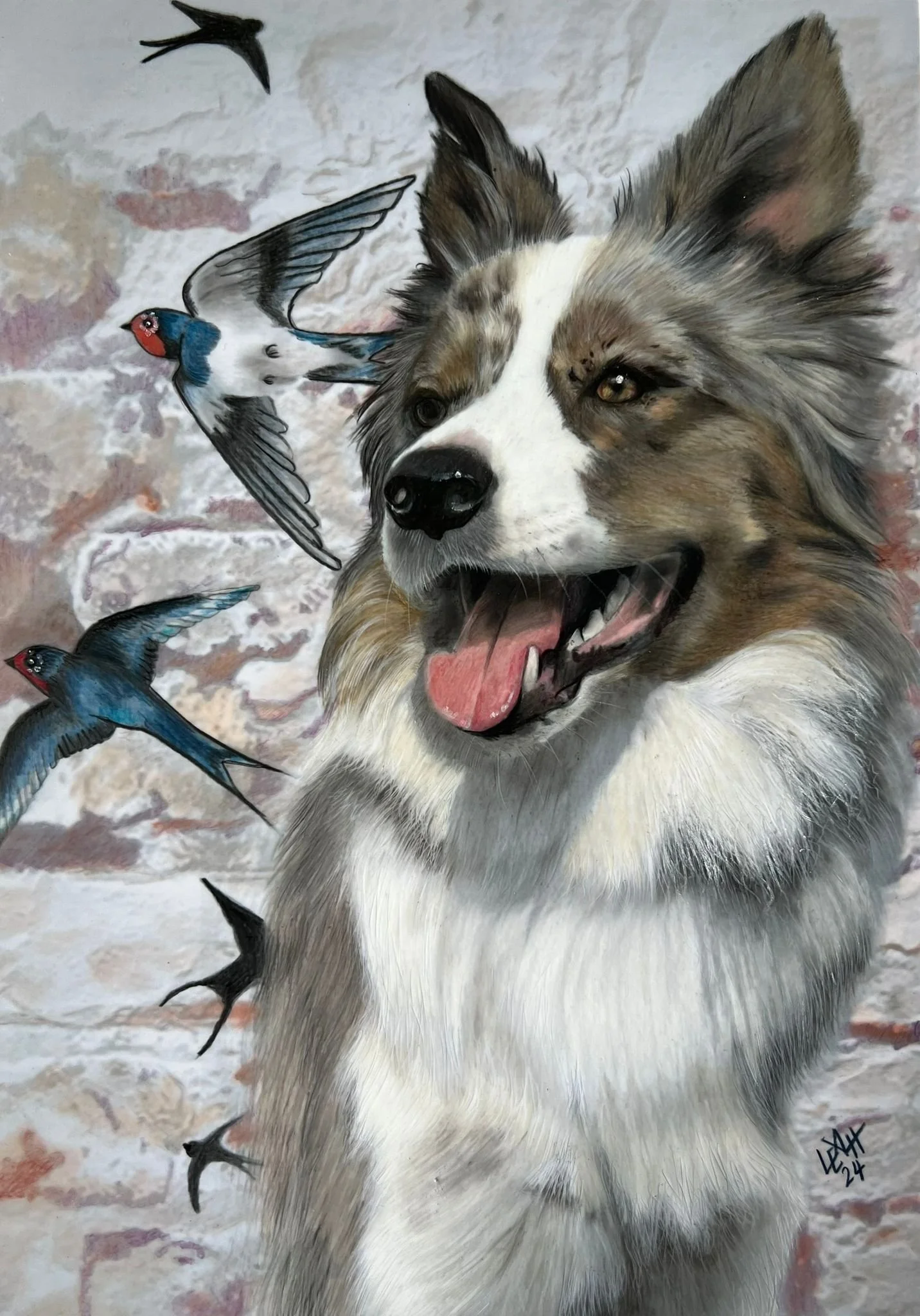 •My portraits are created in coloured pencil, using only high quality Faber Castell Polychromos, Caran D'Ache Pablos and Luminance and Derwent Lightfast oil based pencils.